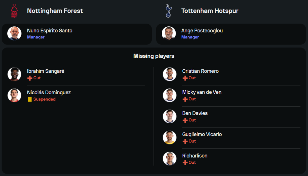 กุนซือ นูโน่ เอสปิริโต้ ซานโต พาฟอเรสต์เก็บชัยชนะ 4 จาก 5 นัดหลังสุดในลีก ทีมยังคงต้องขาดสองตัวหลักอย่าง ดานิโล่ และ อิบราฮิม่า ซ็องกาเร่ ที่ยังไม่พร้อมลงสนาม แต่แกนหลักอย่าง แอนโธนี่ อีลังก้า, มอร์แกน กิ๊บบ์ส-ไวท์, และ คริส วู้ด ยังพร้อมลงสนามในระบบ 4-2-3-1 โดยเฉพาะเกมรุกที่มีความเฉียบคมและน่ากลัวในจังหวะสวนกลับ
