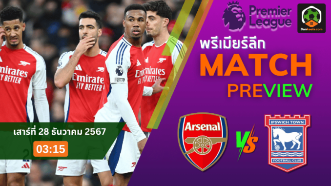 คืนนี้! แฟนบอลเตรียมลุ้นศึกพรีเมียร์ลีก 2024 ที่สนามเอมิเรตส์ สเตเดี้ยม เวลา 03.15 น. เมื่อ อาร์เซนอล ทีมแกร่งในบ้านเตรียมรับมือกับ อิปสวิช ทาวน์ ทีมน้องใหม่ที่กำลังดิ้นรนหนีตกชั้น เกมนี้นอกจากจะเป็นบททดสอบสำคัญของทั้งสองทีมแล้ว ยังถือเป็นโอกาสให้เจ้าถิ่นโชว์ฟอร์มเดือดปิดท้ายปีในช่วง “บ๊อกซิ่งเดย์” ตารางบอลวันนี้ ระบุว่านี่เป็นแมตช์ที่ไม่ควรพลาด!