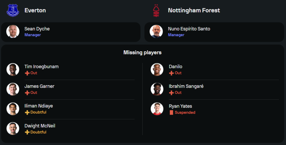 ฟอเรสต์อยู่ในฟอร์มที่ยอดเยี่ยม ชนะ 4 นัดรวดในลีก ยิงได้ถึง 8 ประตู และเสียเพียง 3 ลูก เกมเยือนในฤดูกาลนี้พวกเขาโชว์ฟอร์มได้ดี ชนะ 5 จาก 9 นัด ถือว่าเป็นคู่แข่งที่เอฟเวอร์ตันต้องระวัง