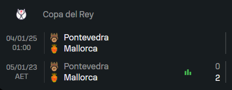 การพบกันครั้งล่าสุดระหว่าง ปอนเตเบดรา และ มายอร์ก้า เกิดขึ้นในเดือนมกราคมปี 2023 โดยมายอร์ก้าเป็นฝ่ายเอาชนะไปได้ 2-0 ความเหนือกว่าของทีมเยือนยังชัดเจนเมื่อดูจากระดับลีกและผลงานที่ผ่านมา อย่างไรก็ตาม เกมนี้ยังคงเป็นโอกาสให้ ทีเด็ดบอล ของเจ้าบ้านได้แสดงฝีมือว่าพวกเขาสามารถต่อกรกับทีมจากลีกสูงสุดได้หรือไม่