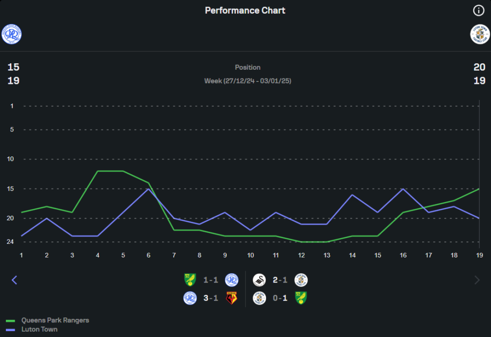 ควีนส์ปาร์ค เรนเจอร์ส: เจ้าบ้านโชว์ฟอร์มในรังได้อย่างแข็งแกร่ง ด้วยการเก็บชัยชนะ 3 นัดรวดในบ้าน และยิงได้ถึง 7 ประตูในช่วงดังกล่าว ฟอร์มนอกบ้านแม้จะยังไม่คงเส้นคงวา แต่ความมั่นใจในบ้านตัวเองทำให้พวกเขากลายเป็นทีมที่น่ากลัวอย่างยิ่งในขณะนี้