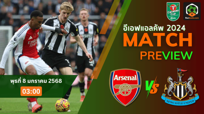 การแข่งขันฟุตบอล อีเอฟแอล คัพ 2024 คืนวันพุธที่ 8 มกราคมนี้ เป็นการพบกันระหว่างสองทีมยักษ์ใหญ่แห่งอังกฤษ อาร์เซนอล และ นิวคาสเซิ่ล ยูไนเต็ด ที่สนามเอมิเรตส์ สเตเดี้ยม ในเวลา 03.00 น. ทั้งสองทีมกำลังโชว์ฟอร์มร้อนแรงในฤดูกาลนี้ ทำให้เกมนี้น่าจับตามองอย่างยิ่งสำหรับแฟนบอลทั่วโลก ตารางบอลวันนี้ ระบุว่าแมตช์นี้เป็นหนึ่งในไฮไลต์สำคัญของรอบการแข่งขันนี้ ความดุเดือดของเกมนี้คงหนีไม่พ้นการปะทะของแผนการเล่นและฟอร์มที่ยอดเยี่ยมของทั้งสองฝ่าย