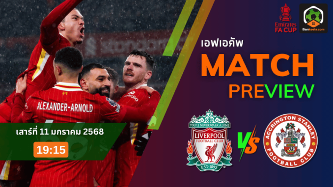 นี่เป็นครั้งแรกที่ ลิเวอร์พูล และ แอคคริงตัน สแตนลี่ย์ โคจรมาพบกันในประวัติศาสตร์ เอฟเอคัพ ทั้งสองทีมต่างมุ่งมั่นและมีเป้าหมายชัดเจน ฝั่งเจ้าบ้านหวังสร้างผลงานต่อเนื่อง ส่วนทีมเยือนพร้อมจะใช้โอกาสนี้พิสูจน์ตัวเอง จับตาดู ทีเด็ดบอล จากแมตช์นี้ที่อาจสร้างความประทับใจเกินคาด!