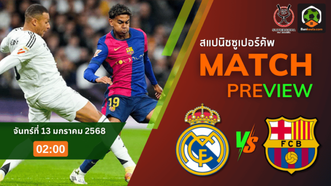 การแข่งขันที่ทุกสายตาจับจ้องกำลังจะระเบิดขึ้น เมื่อ “ราชันชุดขาว” เรอัล มาดริด ต้องเผชิญหน้ากับอริร่วมลีกอย่าง “เจ้าบุญทุ่ม” บาร์เซโลน่า ในศึก สแปนิช ซูเปอร์ คัพ 2024 ซึ่งจะลงสนามในคืนวันจันทร์ที่ 13 มกราคม 2568 เวลา 02.00 น. ที่สนามกลาง ริยาด ประเทศซาอุดิอาระเบีย การดวลกันครั้งนี้ไม่เพียงแค่ศักดิ์ศรีของสองทีมยักษ์ใหญ่ แต่ยังเป็นบทพิสูจน์ว่าใครคือเบอร์หนึ่งของฟุตบอลสเปน ตารางบอลวันนี้ เตรียมจารึกประวัติศาสตร์บทใหม่ที่คุณไม่ควรพลาด!