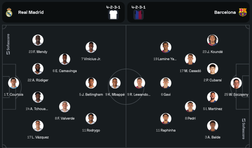 กุนซือ คาร์โล อันเชล็อตติ พร้อมส่งผู้เล่นชุดใหญ่ลงสนาม แม้จะขาดตัวหลักอย่าง ดานี่ การ์บาฆาล และ เอแดร์ มิลิเตา ที่ยังอยู่ในช่วงพักฟื้น แต่ด้วยฟอร์มร้อนแรงจากเกมที่ผ่านมา คาดว่า “ราชันชุดขาว” จะยังคงใช้ระบบ 4-2-3-1 โดยมี คีเลียน เอ็มบัปเป้ เป็นหัวใจในแนวรุก ร่วมด้วย จู๊ด เบลลิงแฮม และ วินิซิอุส จูเนียร์ ที่พร้อมสร้างความปั่นป่วนในแดนคู่แข่ง