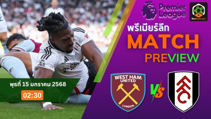 ศึกฟุตบอลพรีเมียร์ลีก 2024 เดินทางมาถึงแมตช์สำคัญ เมื่อ เวสต์แฮม ยูไนเต็ด ต้องเปิดบ้านต้อนรับการมาเยือนของ ฟูแล่ม ในวันพุธที่ 15 มกราคม 2568 เวลา 02.30 น. บนสนามที่เต็มไปด้วยความคาดหวังของแฟนบอลทั้งสองทีม เกมนี้มีความสำคัญต่ออันดับใน ตารางบอลวันนี้ อย่างมาก มาร่วมวิเคราะห์ความพร้อมและฟอร์มการเล่นของทั้งสองทีมที่เตรียมมอบความมันส์แบบเต็มพิกัด!