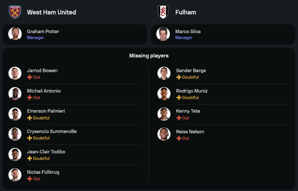 เจ้าบ้านต้องเผชิญกับปัญหาผู้เล่นบาดเจ็บหลายราย ไม่ว่าจะเป็น จาร์ร็อด โบเว่น, มิคาอิล อันโตนิโอ, และ นิคลาส ฟูลล์ครู้ก ที่ยังไม่พร้อมลงสนาม ขณะเดียวกัน เกรแฮม พ็อตเตอร์ ผู้จัดการทีมคนใหม่ ต้องพยายามดึงศักยภาพของทีมออกมาให้ได้ โดยคาดว่าจะจัดทีมในระบบ 4-2-3-1 นำโดย แดนนี่ อิงส์ เป็นตัวเป้าล่าตาข่าย พร้อมการสนับสนุนจาก ลูคัส ปาเกต้า และ โมฮัมเหม็ด คูดุส ในแดนกลาง