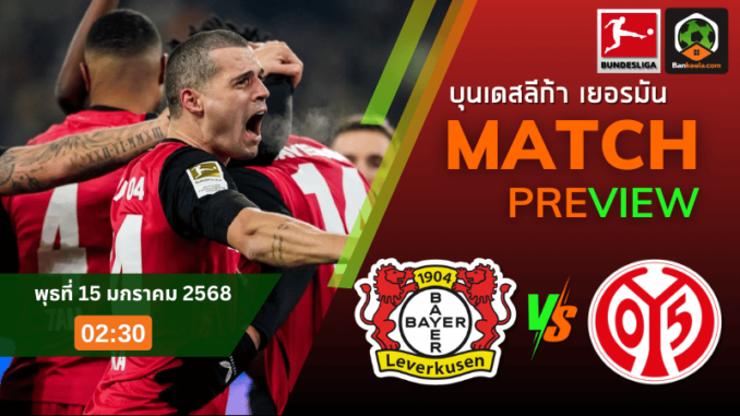 การแข่งขันบุนเดสลีกาที่ทุกคนรอคอยกำลังจะเริ่มขึ้นในคืนวันพุธที่ 15 มกราคม 2568 เวลา 02.30 น. ที่สนามเบย์อารีน่า ทีม “ห้างยา” ไบเออร์ เลเวอร์คูเซ่น เปิดบ้านรับการมาเยือนของ ไมนซ์ 05 โดยทั้งสองทีมต่างกำลังอยู่ในช่วงฟอร์มร้อนแรง และพร้อมจะสร้างความตื่นเต้นใน ตารางบอลวันนี้