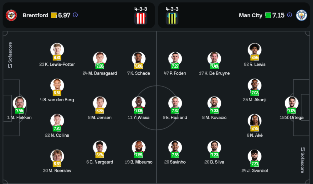 สกอร์ที่คาด: เบรนท์ฟอร์ด เสมอ แมนฯ ซิตี้ 2-2