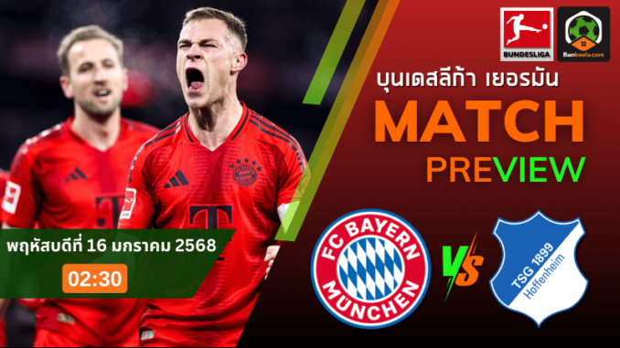 การแข่งขันฟุตบอลบุนเดสลีกาสัปดาห์นี้น่าสนใจอย่างยิ่ง เมื่อ บาเยิร์น มิวนิค ทีมจ่าฝูง เตรียมเปิดสนามอลิอันซ์ อารีน่า รับการมาเยือนของ ทีเอสจี ฮอฟเฟ่นไฮม์ ที่ยังคงพยายามยกระดับฟอร์มตัวเอง การแข่งขันในครั้งนี้มีความสำคัญทั้งในแง่ของแต้มและศักดิ์ศรี และยังเหมาะสำหรับแฟนบอลที่ต้องการติดตาม ตารางบอลวันนี้ และผลการแข่งขันที่เข้มข้น