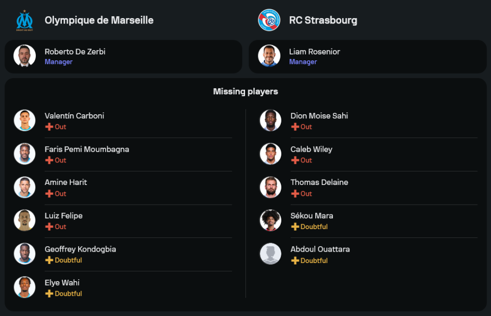 ลูกทีมของ โรแบร์โต้ เด แซร์บี้ อยู่ในช่วงฟอร์มยอดเยี่ยม ชนะ 4 จาก 5 เกมหลังสุดในลีก พร้อมกับเกาะกลุ่มท็อป 3 ได้เหนียวแน่น อย่างไรก็ตาม เกมนี้พวกเขามีปัญหานักเตะเจ็บหลายราย ทั้ง ฟาริส มูมบักน่า, อามีน ฮาริต, และ ลุยซ์ เฟลิเป้ ขณะที่ เอลี วาฮี และ เจฟฟรีย์ กงด็อกเบีย ต้องรอเช็กความฟิต แต่ข่าวดีคือ เมสัน กรีนวู้ด กำลังอยู่ในช่วงท็อปฟอร์ม พร้อมเป็นตัวความหวังล่าตาข่าย