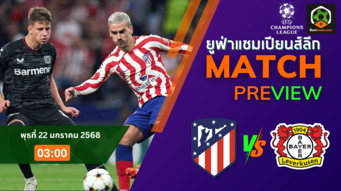 การกลับมาอีกครั้งของศึกที่เต็มไปด้วยความดุเดือดใน ยูฟ่าแชมเปียนส์ลีก คืนนี้จะเป็นการเผชิญหน้ากันระหว่างสองทีมที่ฟอร์มร้อนแรงไม่แพ้กันอย่าง แอตเลติโก มาดริด ทีมดังจากลาลีกาสเปน และ ไบเออร์ เลเวอร์คูเซ่น ยอดทีมจากเยอรมนี โดยการแข่งขันจะจัดขึ้นในวันพุธที่ 22 มกราคม 2568 เวลา 03.00 น. ณ สนามว่านต๋า เมโทรโปลิตาโน่ ในกรุงมาดริด ซึ่งบรรดาแฟนบอลที่กำลังเช็ก ตารางบอลวันนี้ ไม่ควรพลาดอย่างยิ่ง เพราะนี่คืออีกหนึ่งแมตช์ที่มีโอกาสสร้างประวัติศาสตร์ให้จดจำได้