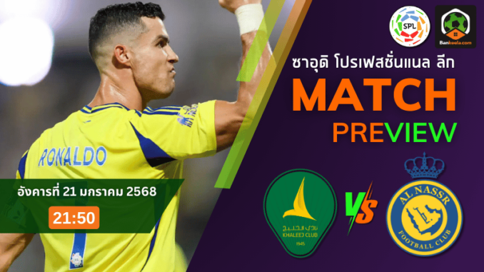 เกมใหญ่แห่งศึก ซาอุดิ โปรเฟสชั่นแนล ลีก 2024 คืนวันอังคารที่ 21 มกราคม 2568 เวลา 21.50 น. อัล คาลีจ ทีมอันดับ 7 ของตาราง พร้อมเปิดบ้านสนามปรินซ์ โมฮาเหม็ด บิน ฟาฮัด สเตเดี้ยม ต้อนรับ อัล นาสเซอร์ ทีมแกร่งที่นำโดย คริสเตียโน่ โรนัลโด้ ซึ่งกำลังต้องการสามแต้มอย่างยิ่งยวด