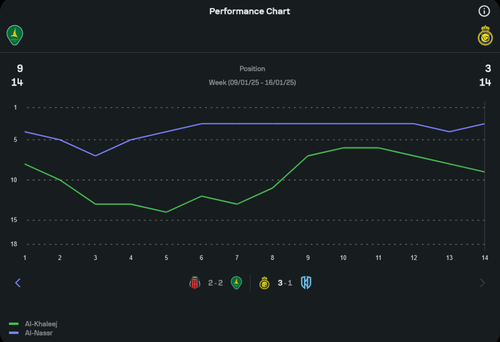 ทีมของ คริสเตียโน่ โรนัลโด้ ฟอร์มช่วงนี้มีสะดุดไปบ้าง โดย 5 นัดหลังสุดในลีกพวกเขาชนะ 2 เสมอ 2 และแพ้ 1 โดยเกมล่าสุดเสมอกับ อัล-ตาวอน 1-1 แม้จะออกนำก่อนแต่ก็เสียประตูตีเสมอในช่วงท้าย ซึ่งเป็นปัญหาที่พวกเขาต้องรีบแก้ไข