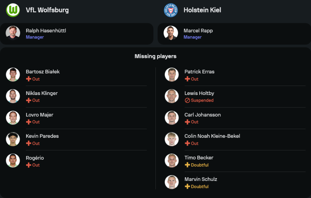 คาดว่า โวล์ฟสบวร์ก จะใช้เกมรุกที่ดุดันและแนวรุกตัวเก่งกดดันคู่แข่งอย่างหนัก ขณะที่ โฮลสไตน์ คีล คงมาเล่นเกมรับและรอสวนกลับ แต่ไม่น่าต้านความเฉียบคมของเจ้าถิ่นได้