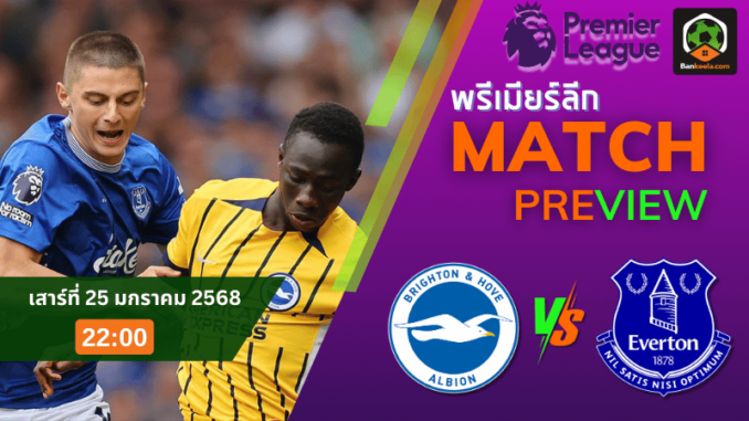 การแข่งขัน พรีเมียร์ลีก อังกฤษ ฤดูกาล 2024 เดินหน้าเข้าสู่ช่วงสำคัญของซีซั่น โดยหนึ่งในแมตช์ที่น่าจับตามองคือการเผชิญหน้ากันระหว่าง ไบรท์ตัน โฮฟ อัลเบี้ยน และ เอฟเวอร์ตัน ซึ่งจะลงสนามในวันเสาร์ที่ 25 มกราคม 2568 เวลา 22.00 น. ณ สนาม เอเม็กซ์ สเตเดี้ยม เกมนี้ถือเป็นศึกที่มีความสำคัญสำหรับทั้งสองทีมที่ต่างต้องการเก็บแต้มเพื่อขยับอันดับในตาราง