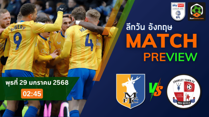 วิเคราะห์บอลวันนี้ ดวลเดือด ลีกวัน! แมนส์ฟิลด์ ทาวน์ เปิดศึก ครอว์ลี่ย์ ทาวน์ ศึกแห่งศักดิ์ศรี คืนนี้ 02.45 น.