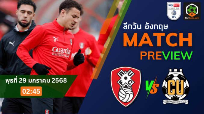 ศึก ลีกวัน อังกฤษ 2024 คืนนี้ ร็อตเธอร์แฮม ยูไนเต็ด เตรียมเปิดรังรับมือ เคมบริดจ์ ยูไนเต็ด ในเกมที่มีเดิมพันสำคัญต่อทั้งสองทีม เจ้าบ้านต้องการกลับมาเก็บชัยชนะให้ได้หลังสะดุดแพ้ในนัดล่าสุด ขณะที่ทีมเยือนเพิ่งเริ่มคืนฟอร์ม แต่ยังต้องดิ้นรนหนีโซนท้ายตารางให้ได้ ตารางบอลวันนี้ ระบุว่าแมตช์นี้มีความหมายอย่างยิ่ง และน่าจะเป็นการดวลที่เข้มข้นอีกหนึ่งเกมของฤดูกาล