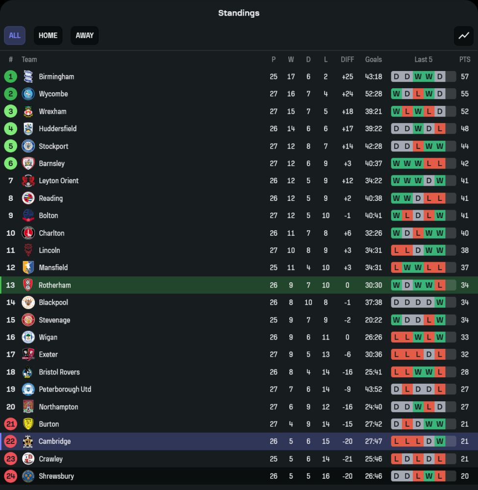 แม้ว่าฟอร์มการเล่นในลีกจะเริ่มดีขึ้นเล็กน้อย แต่ปัญหาใหญ่ของพวกเขายังอยู่ที่เกมเยือน ซึ่งพวกเขาชนะเพียงแค่ 1 จาก 13 นัด และเสียประตูไปถึง 26 ลูก สถิติเหล่านี้แสดงให้เห็นว่าพวกเขามักมีปัญหากับการเล่นนอกบ้าน และน่าจะต้องเน้นเกมรับเป็นพิเศษในแมตช์นี้