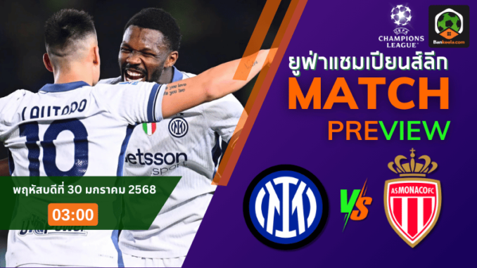 ศึกแห่งศักดิ์ศรีในรายการ ยูฟ่า แชมเปียนส์ลีก 2024 กลับมาระเบิดความมันส์อีกครั้ง! คืนวันพฤหัสบดีที่ 30 มกราคม 2568 เวลา 03.00 น. อินเตอร์ มิลาน ยักษ์ใหญ่จากอิตาลี พร้อมเปิดสนาม ซาน ซิโร่ รับมือ โมนาโก จากลีกเอิง ฝรั่งเศส เกมนี้ถือเป็นนัดสำคัญของทั้งสองทีมที่ต้องคว้าชัยให้ได้เพื่อโอกาสเข้าสู่รอบต่อไป เปรียบเสมือนเกมเดิมพันอนาคตในรายการนี้ แน่นอนว่าแฟนบอลทั่วโลกต่างจับตามอง และ ตารางบอลวันนี้ จับคู่บิ๊กแมตช์นี้ไว้ให้ติดตามกันอย่างแน่นอน