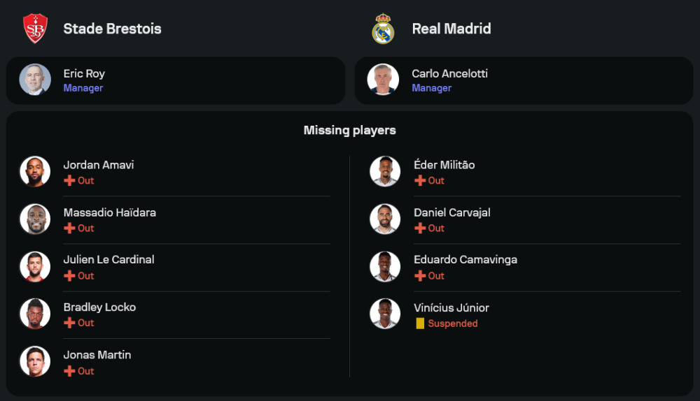 แบรสต์มีจุดเด่นที่เกมรับแน่น และมักเล่นได้ดีในเกมใหญ่โดยเฉพาะในบ้าน อย่างไรก็ตาม การเผชิญหน้ากับทีมระดับ เรอัล มาดริด ไม่ใช่เรื่องง่าย และแม้ว่าจะมีผู้เล่นบาดเจ็บหลายราย แต่ทีมของ อันเชล็อตติ ก็ยังแข็งแกร่งพอที่จะคว้า 3 แต้มออกไปจากฝรั่งเศสได้