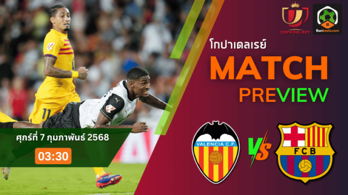 คืนวันศุกร์ที่ 7 กุมภาพันธ์ 2568 เวลา 03.30 น. เตรียมพบกับการเผชิญหน้าที่เต็มไปด้วยความดุเดือด เมื่อ บาเลนเซีย เปิดรังเหย้าเผชิญหน้ากับยักษ์ใหญ่แห่งแคว้นกาตาลัน บาร์เซโลน่า ในศึก โกปา เดล เรย์ 2024 การเจอกันครั้งนี้ไม่เพียงแค่การล่าตั๋วเข้าสู่รอบต่อไป แต่ยังเป็นศึกแห่งศักดิ์ศรีของสองทีมที่มีประวัติการพบกันอันดุเดือด สำหรับแฟนบอลที่กำลังตามหาความตื่นเต้นใน ตารางบอลวันนี้ บอกเลยว่าคู่นี้คือเกมที่คุณไม่ควรพลาด!
