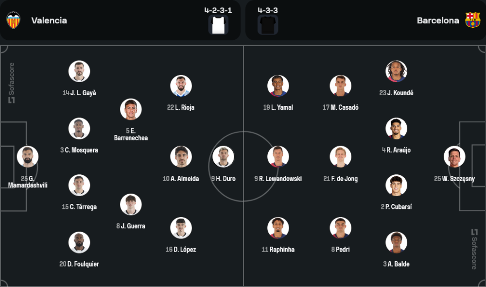 บาเลนเซีย: ภายใต้การคุมทีมของ คาร์ลอส คอร์เบราน เจ้าถิ่นยังคงขาด เธียร์รี่ กอร์เรอา ที่มีอาการบาดเจ็บ แต่ขุมกำลังหลักยังคงพร้อมเต็มที่ โดยเฉพาะ อันเดร อัลไมด้า ที่จะรับบทจอมทัพในแดนกลาง สนับสนุนการล่าตาข่ายของ อูโก้ โดโร่ ที่พร้อมสร้างปัญหาให้กับแนวรับของบาร์เซโลน่า ส่วนด้านข้างมี หลุยส์ ริโอฆ่า ที่ฟอร์มกำลังร้อนแรงคอยทะลุทะลวงเกมรับของคู่แข่ง