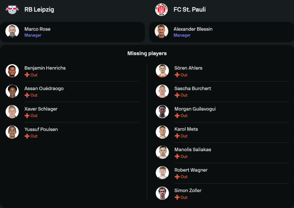 เกมนี้ ไลป์ซิก อาจครองบอลได้มากกว่า แต่ด้วยฟอร์มการเล่นที่ยังไม่เข้าที่ บวกกับเกมสวนกลับของ ซังค์ เพาลี ที่อันตราย นี่อาจเป็นอีกเกมที่ทีมเยือนสร้างปัญหาให้กับเจ้าบ้านได้มากกว่าที่คิด