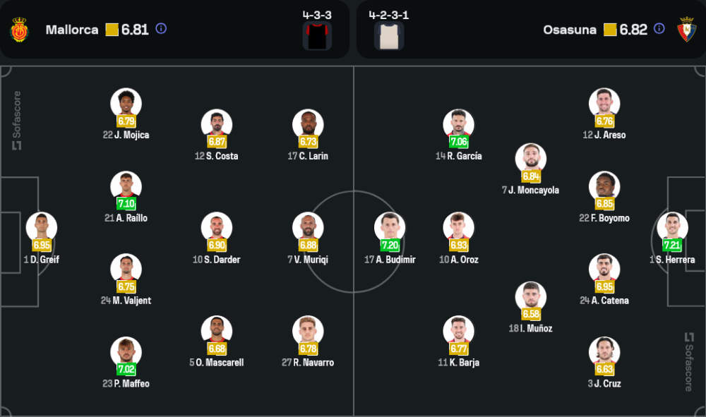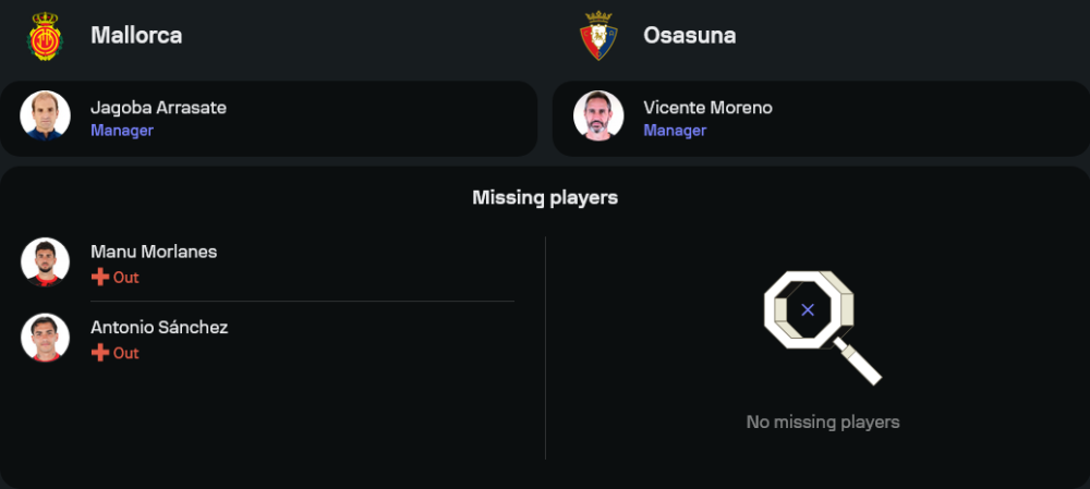 ทางด้านทีมเยือน โอซาซูน่า ภายใต้การนำของ บิเซนเต้ โมเรโน่ มีข่าวดีเพราะพวกเขาไม่มีผู้เล่นบาดเจ็บหรือติดโทษแบน พร้อมส่งชุดที่ดีที่สุดลงสนาม เกมนี้จะมาในระบบ 4-2-3-1 โดยมี อันเต้ บูดิเมียร์ ยืนหน้าเป้า ขนาบข้างด้วย รูเบน การ์เซีย และ กิเก้ บาร์ฆ่า ขณะที่ ฆอน มอนกาโยล่า กับ ไอม่าร์ โอรอซ จะคอยคุมจังหวะเกมแดนกลาง