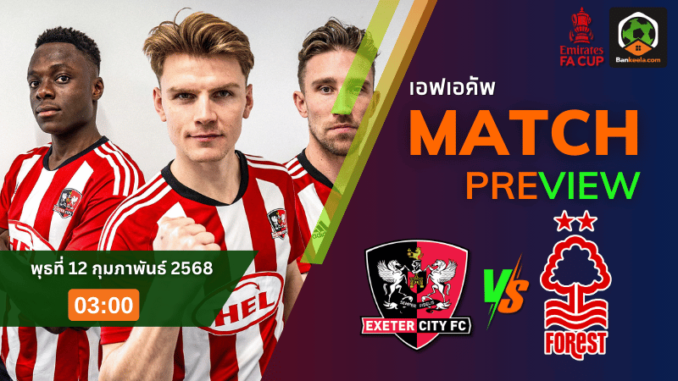 ศึก เอฟเอ คัพ 2024 เดินทางมาถึงรอบที่สำคัญ โดยในคืนวันพุธที่ 12 กุมภาพันธ์ 2568 เวลา 03.00 น. เอ็กเซเตอร์ ซิตี้ ทีมจากลีก วัน ต้องเปิดสนาม เซนต์ เจมส์ พาร์ค รับมือกับ น็อตติ้งแฮม ฟอเรสต์ ทีมจากพรีเมียร์ลีก แม้ชื่อชั้นของฟอเรสต์จะเหนือกว่า แต่บอลถ้วยมักมีเรื่องพลิกล็อกเสมอ เกมนี้จึงเป็นอีกแมตช์ที่แฟนบอลไม่ควรพลาด และแน่นอนว่า ตารางบอลวันนี้ ต่างจับตามองว่าทีมจากลีกล่างจะสร้างเซอร์ไพรส์ได้หรือไม่