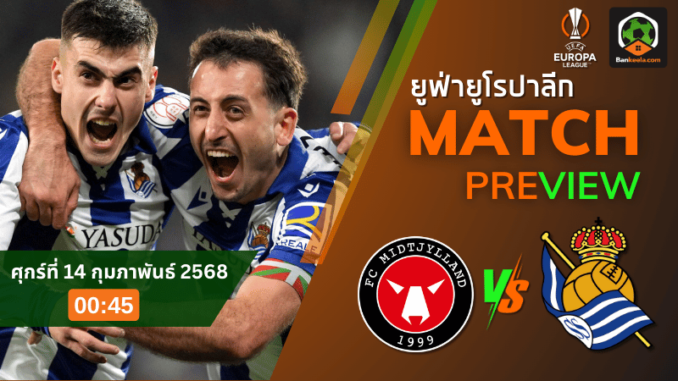เกมใหญ่ในศึก ยูฟ่า ยูโรป้า ลีก 2024 กำลังจะระเบิดความมันส์ขึ้นในคืนวันศุกร์ที่ 14 กุมภาพันธ์นี้ เวลา 00.45 น. ตามเวลาประเทศไทย เมื่อ มิดทิลแลนด์ ทีมแกร่งจากเดนมาร์ก เตรียมเปิดบ้านรับมือ เรอัล โซเซียดาด ตัวแทนจากลาลีกาสเปน ในแมตช์ที่อัดแน่นไปด้วยความเข้มข้นและเดิมพันสูง แฟนบอลห้ามพลาด!
