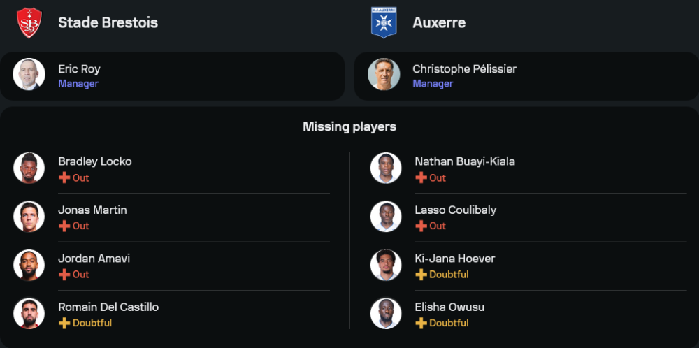 ฝั่งทีมเยือนของ คริสตอฟ เปลิสซิเยร์ ต้องเผชิญกับปัญหาผู้เล่นบาดเจ็บ โดยจะไม่มี ลาสโซ่ คูลิบาลี่ และ โชลี่ ที่ติดโทษแบน นอกจากนี้ยังต้องเช็กฟิต คี ยาน่า ฮูเวอร์ และ เอลิช่า โอวูซู แต่พวกเขายังมี อาเหม็ด ตราโอเร่ ที่เป็นตัวความหวังในแดนหน้า พร้อมประสานงานกับ แกต็อง แปร์กแร็ง และ ลัสซีน ซินาโยโก้