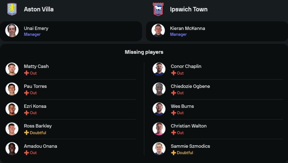 เมื่อดูจากสภาพทีมและฟอร์มการเล่นของทั้งสองฝ่าย ค่อนข้างชัดเจนว่า แอสตัน วิลล่า มีโอกาสสูงที่จะคว้าชัยในเกมนี้ พวกเขามีแนวรุกที่ดุดันและสามารถเล่นในบ้านได้อย่างแข็งแกร่ง ขณะที่ อิปสวิช กำลังมีปัญหาในเกมรับ และดูเหมือนว่ายังไม่สามารถยกระดับฟอร์มให้ขึ้นมาเทียบชั้นกับทีมใน พรีเมียร์ลีก ได้