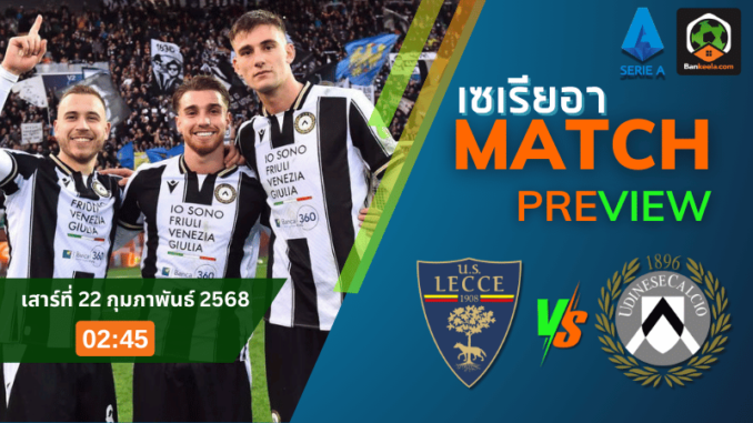 คืนวันเสาร์ที่ 22 กุมภาพันธ์ 2568 เวลา 02.45 น. ศึก กัลโช่ เซเรีย อา เดินหน้าสู่ช่วงโค้งสุดท้าย และเกมที่น่าจับตามองคืนนี้คือการดวลกันระหว่าง เลชเช่ ทีมอันดับล่างของตาราง ที่ต้องดิ้นรนหนีโซนตกชั้น เปิดรังปะทะ อูดิเนเซ่ ที่ฟอร์มเริ่มกระเตื้องขึ้นเรื่อยๆ ตามตารางบอลวันนี้ นี่คือเกมที่มีความหมายต่อทั้งสองทีมอย่างยิ่ง ฝ่ายหนึ่งต้องการแต้มเพื่ออยู่รอด ขณะที่อีกฝ่ายหวังพุ่งขึ้นสู่โซนกลางตาราง มาดูกันว่าใครจะคว้าสามแต้มสำคัญนี้ไปได้