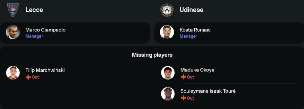สกอร์ที่คาด : เลชเช่ 0-1 อูดิเนเซ่