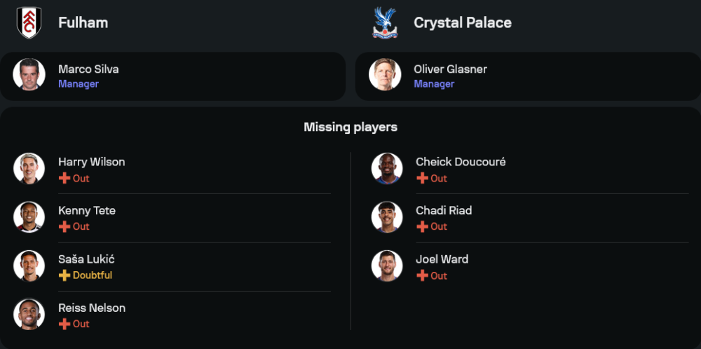 ลูกทีมของ มาร์โก้ ซิลวา กำลังอยู่ในช่วงที่ฟอร์มดี โดยเกมล่าสุดพวกเขาเปิดบ้านเชือด น็อตติ้งแฮม ฟอเรสต์ 2-1 ทำให้ขยับเข้าใกล้โซนบนของตาราง อย่างไรก็ตาม พวกเขายังมีปัญหาผู้เล่นบาดเจ็บ โดย แฮร์รี่ วิลสัน, ไรสส์ เนลสัน และ เคนนี่ เตเต้ ยังคงไม่พร้อมลงสนาม ส่วน ซาซ่า ลูคิช ต้องรอเช็กความฟิต เกมนี้คาดว่าแนวรุกจะใช้ ราอูล ฆิเมเนซ เป็นกองหน้าตัวเป้า โดยมี อดาม่า ตราโอเร่, เอมิล สมิธ โรว์ และ อเล็กซ์ อิโวบี้ คอยสนับสนุนเกมรุก