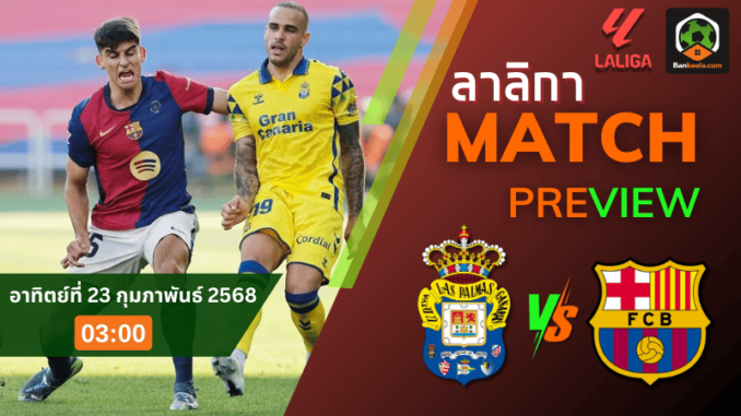ฟุตบอล ลาลีกา สเปน คืนวันอาทิตย์นี้ มีศึกที่น่าติดตามอย่างยิ่งเมื่อ ลาส พัลมาส เตรียมเปิดรังรับมือ บาร์เซโลน่า ทีมลุ้นแชมป์ที่กำลังฟอร์มร้อนแรง โดยเกมนี้จะลงสนามในวันอาทิตย์ที่ 23 กุมภาพันธ์ 2568 เวลา 03.00 น. ตาม ตารางบอลวันนี้ ถือเป็นอีกหนึ่งเกมที่มีความหมายอย่างมากสำหรับทั้งสองทีม
