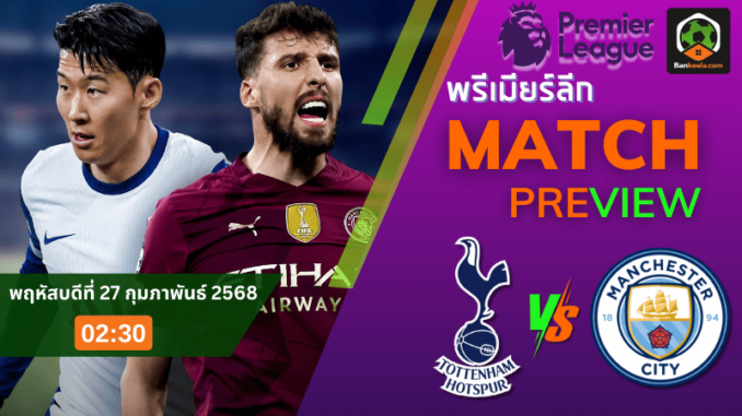 พรีเมียร์ลีก อังกฤษ กลับมาระเบิดความมันส์อีกครั้งกับคู่บิ๊กแมตช์ที่แฟนบอลรอคอย ท็อตแน่ม ฮ็อทสเปอร์ เปิดรังดวลเดือด แมนเชสเตอร์ ซิตี้ ในค่ำคืนวันพฤหัสบดีที่ 27 กุมภาพันธ์ 2568 เวลา 02.30 น. ศึกใหญ่ที่มีเดิมพันสูงสำหรับทั้งสองทีม เพราะ “ไก่เดือยทอง” ต้องการแต้มเพื่อเบียดลุ้นท็อปโฟร์ ขณะที่ “เรือใบสีฟ้า” หวังกลับมาสู่เส้นทางลุ้นแชมป์ให้ได้หลังสะดุดในเกมล่าสุด