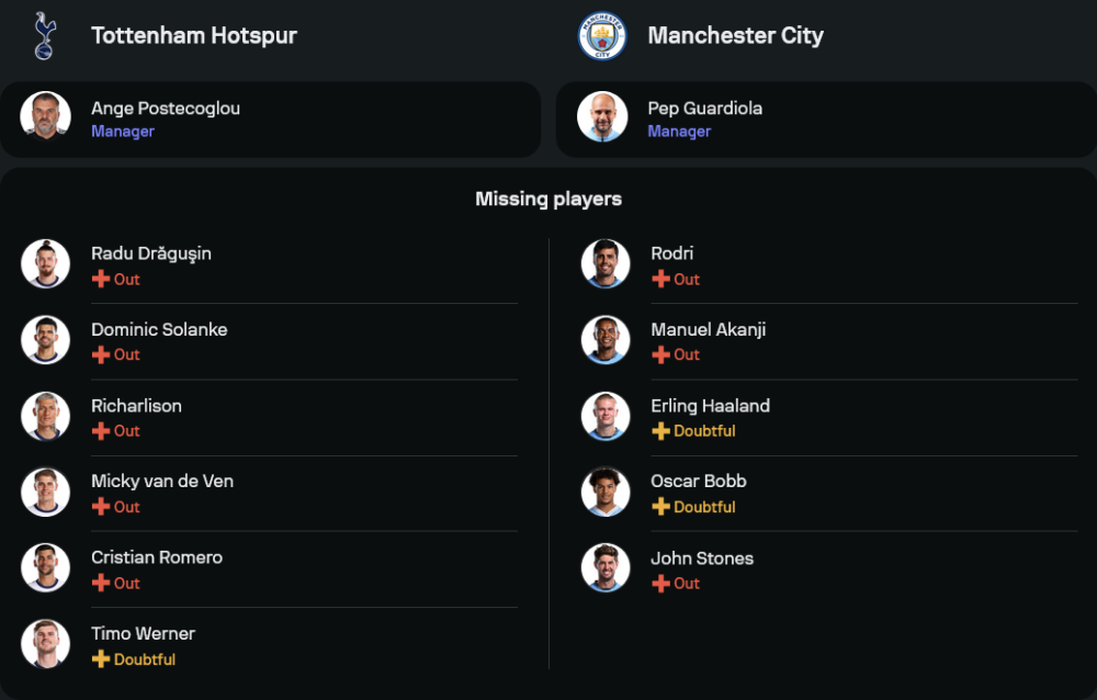 สิ่งที่น่าสนใจคือ การเล่นในบ้านของสเปอร์สที่แม้จะไม่คงเส้นคงวา แต่เมื่อเจอทีมใหญ่ พวกเขามักทำได้ดี ส่วนแมนฯ ซิตี้ หากไม่มี เออร์ลิ่ง ฮาลันด์ แนวรุกอาจลดความดุดันลงไป ซึ่งอาจทำให้เกมนี้ไม่ง่ายสำหรับทีมเยือน
