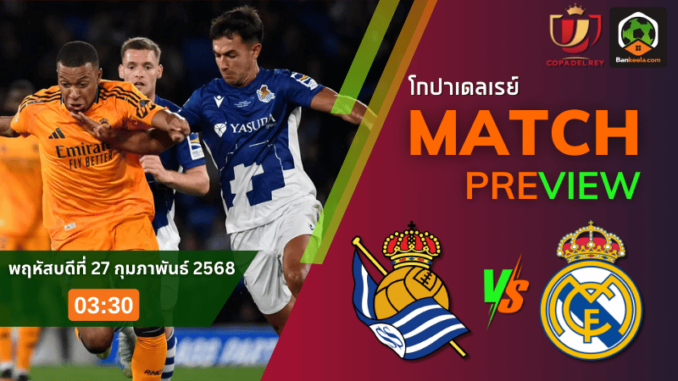 วิเคราะห์บอลวันนี้ โกปา เดล เรย์ 2024 เรอัล โซเซียดาด vs เรอัล มาดริด วันพฤหัสบดีที่ 27 กุมภาพันธ์ 2568 เวลา 03.30 น.