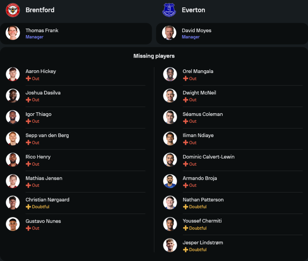 ลูกทีมของ โธมัส แฟร้งค์ กำลังอยู่ในช่วงที่ต้องเรียกความมั่นใจ แม้จะเพิ่งถล่มเลสเตอร์มา 4-0 แต่การเล่นในบ้านช่วงหลังไม่ได้แข็งแกร่งเหมือนแต่ก่อน ความพร้อมก่อนเกมนี้ยังคงขาดนักเตะตัวหลักหลายราย เช่น อารอน ฮิคกี้ย์, ริโก้ เฮนรี่, โจชัว ดาซิลวา, อิกอร์ ธิอาโก้ และ มาธิอัส เยนเซ่น ที่ยังมีอาการบาดเจ็บ ขณะที่ คริสเตียน นอร์การ์ด ต้องรอเช็คความฟิตก่อนเกม