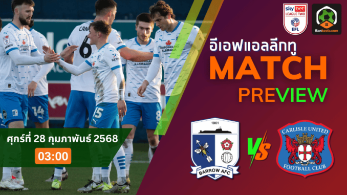 ดูบอลสดอีเอฟแอลลีกทู 2024 ถ่ายทอดสด บาร์โรว์ เอเอฟซี พบ คาร์ไลล์ยูไนเต็ด 27/2/68 – บ้านกีฬา