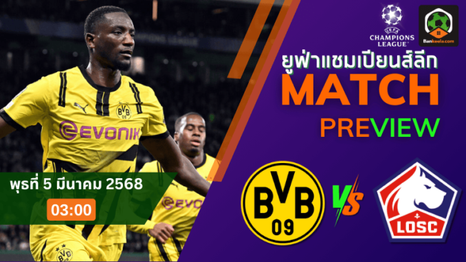 การแข่งขัน ยูฟ่าแชมเปียนส์ลีก 2024 รอบ 16 ทีมสุดท้าย จะดวลกันในคืนวันพุธที่ 5 มีนาคม 2568 เวลา 03.00 น. โดย โบรุสเซีย ดอร์ทมุนด์ ยักษ์ใหญ่แห่ง บุนเดสลีกา เยอรมัน จะเปิดบ้าน ซิกนัล อิดูนา พาร์ค ต้อนรับการมาเยือนของ ลีลล์ ทีมแกร่งจากฝรั่งเศส เกมนี้เป็นแมตช์ที่มีความหมายอย่างมาก เพราะทั้งสองทีมต่างต้องการผลการแข่งขันที่ดีที่สุดก่อนจะไปสู้กันต่อในเลกสองที่ฝรั่งเศส ตารางบอลวันนี้ จึงเต็มไปด้วยความเข้มข้นและน่าติดตาม