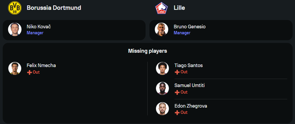 ขณะที่ ลีลล์ อาจมาเล่นแบบรัดกุม และพยายามใช้เกมสวนกลับเป็นอาวุธหลัก อย่างไรก็ตาม ด้วยฟอร์มเกมเยือนที่ไม่ดีนัก ทำให้พวกเขาต้องเน้นความรัดกุมเป็นพิเศษ ไม่เช่นนั้นอาจโดน ดอร์ทมุนด์ เล่นงานได้