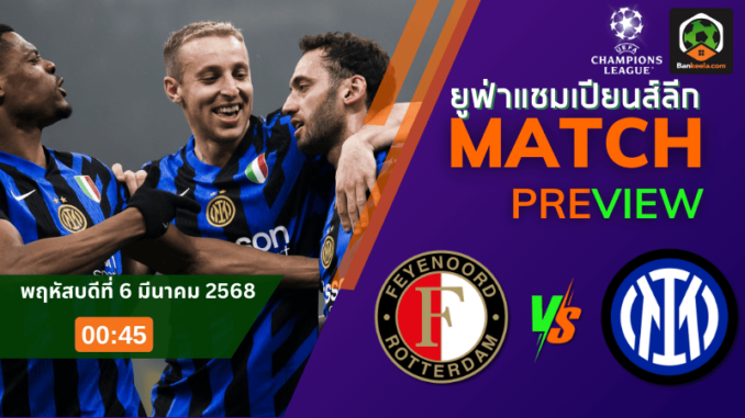 เกมบิ๊กแมตช์แห่งศึก ยูฟ่าแชมเปียนส์ลีก 2024 รอบ 16 ทีมสุดท้าย กำลังจะเปิดฉากขึ้นในคืนวันพฤหัสบดีที่ 6 มีนาคม 2568 เวลา 00.45 น. โดย เฟเยนูร์ด ร็อตเธอร์ดัม แชมป์ลีกดัตช์ เตรียมเปิดรัง สตาดิโอน ไฟเยนูร์ด ต้อนรับการมาเยือนของ อินเตอร์ มิลาน ทีมแกร่งจากอิตาลี ซึ่งกำลังอยู่ในฟอร์มอันร้อนแรง เกมนี้มีความหมายอย่างยิ่งเพราะเป็นศึกเลกแรกที่ทั้งสองทีมต่างต้องการผลการแข่งขันที่ดีเพื่อความได้เปรียบก่อนเกมที่อิตาลี ตารางบอลวันนี้ จึงเต็มไปด้วยความเข้มข้นที่แฟนบอลห้ามพลาด!