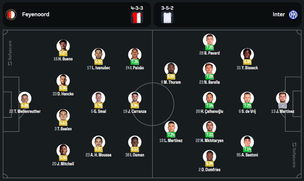 สกอร์ที่คาด: เฟเยนูร์ด 0-2 อินเตอร์ มิลาน