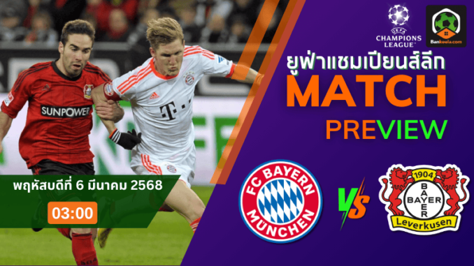ฟุตบอล ยูฟ่าแชมเปียนส์ลีก 2024 รอบ 16 ทีมสุดท้าย กลับมาอีกครั้งพร้อมกับแมตช์ที่แฟนบอลทั่วโลกห้ามพลาด! บาเยิร์น มิวนิค เตรียมเปิดรัง อัลลิอันซ์ อารีน่า รับมือ ไบเออร์ เลเวอร์คูเซ่น ในคืนวันพฤหัสบดีที่ 6 มีนาคม 2568 เวลา 03.00 น. นี่คือการเจอกันของสองทีมระดับท็อปของบุนเดสลีกาที่รู้ทางกันเป็นอย่างดี ทำให้แมตช์นี้จะเข้มข้นเดือดระอุตั้งแต่นาทีแรกแน่นอน! ติดตามความพร้อมของทั้งสองทีมและบทวิเคราะห์เจาะลึกจาก บ้านกีฬา ไปพร้อมกันได้เลย ตารางบอลวันนี้ มีเกมมันส์ให้รับชมอย่างแน่นอน