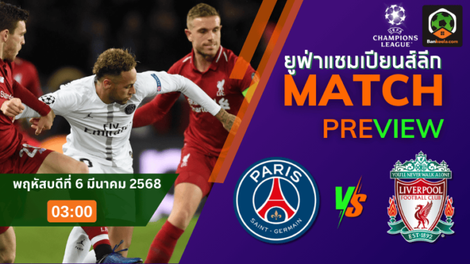 การแข่งขันระดับ ยูฟ่าแชมเปียนส์ลีก 2024 เดินทางมาถึงรอบน็อกเอาต์ ซึ่งคู่ที่แฟนบอลทั่วโลกให้ความสนใจคงหนีไม่พ้นเกมบิ๊กแมตช์ระหว่าง ปารีส แซงต์ แชร์กแมง ทีมมหาอำนาจจากลีกเอิง ฝรั่งเศส เตรียมเปิดรัง ปาร์ก เดส์ แพรงส์ รับการมาเยือนของ ลิเวอร์พูล ยอดทีมจากพรีเมียร์ลีก อังกฤษ ในคืนวันพฤหัสบดีที่ 6 มีนาคม 2568 เวลา 03.00 น. นี่คือเกมที่ทั้งสองทีมจะต้องทุ่มสุดตัวเพื่อคว้าความได้เปรียบก่อนในเลกแรก ตารางบอลวันนี้ นัดนี้รับรองว่ามีดีกรีความมันส์ระดับห้าดาวแน่นอน!