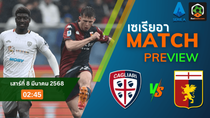 การแข่งขัน กัลโช่ เซเรีย อา 2024 ดำเนินมาถึงช่วงโค้งสุดท้ายที่ทุกแต้มมีความหมาย! คืนวันเสาร์ที่ 8 มีนาคม 2568 เวลา 02.45 น. ตามเวลาไทย ศึกเดือดที่ ซาร์เดญ่า อารีน่า เจ้าถิ่น กาญารี่ เตรียมเปิดรังรับการมาเยือนของ เจนัว เกมนี้ทั้งสองทีมต่างต้องการชัยชนะเพื่อหนีโซนตกชั้นแบบสุดตัว! ซึ่งแน่นอนว่าบรรยากาศเกมนี้จะเดือดตั้งแต่นาทีแรกจนถึงเสียงนกหวีดสุดท้าย