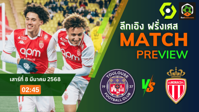 ลีกเอิง ฝรั่งเศส 2024 กลับมาระเบิดความมันส์อีกครั้ง! คืนวันเสาร์ที่ 8 มีนาคม 2568 เวลา 02.45 น. ตามเวลาไทย ตูลูส เตรียมเปิดรัง สตาเดียม เดอ ตูลูส รับการมาเยือนของ โมนาโก สองทีมที่มีเป้าหมายต่างกันสุดขั้ว เจ้าถิ่นกำลังไล่ล่าพื้นที่ยุโรป ขณะที่ทีมเยือนกำลังเร่งเครื่องทำแต้มเพื่อไล่ล่าตำแหน่งหัวตาราง งานนี้มีแต่เดือดกับเดือด!